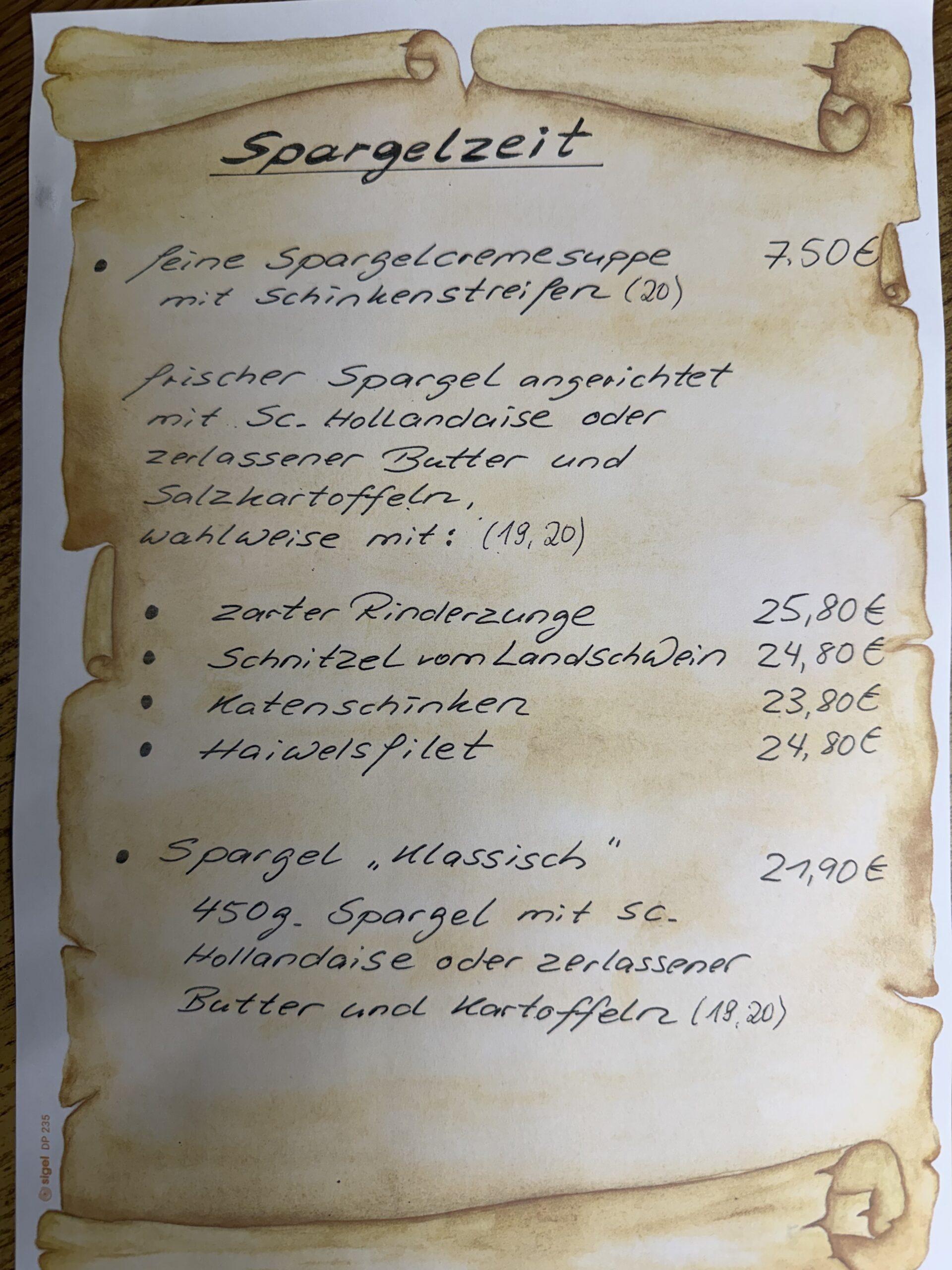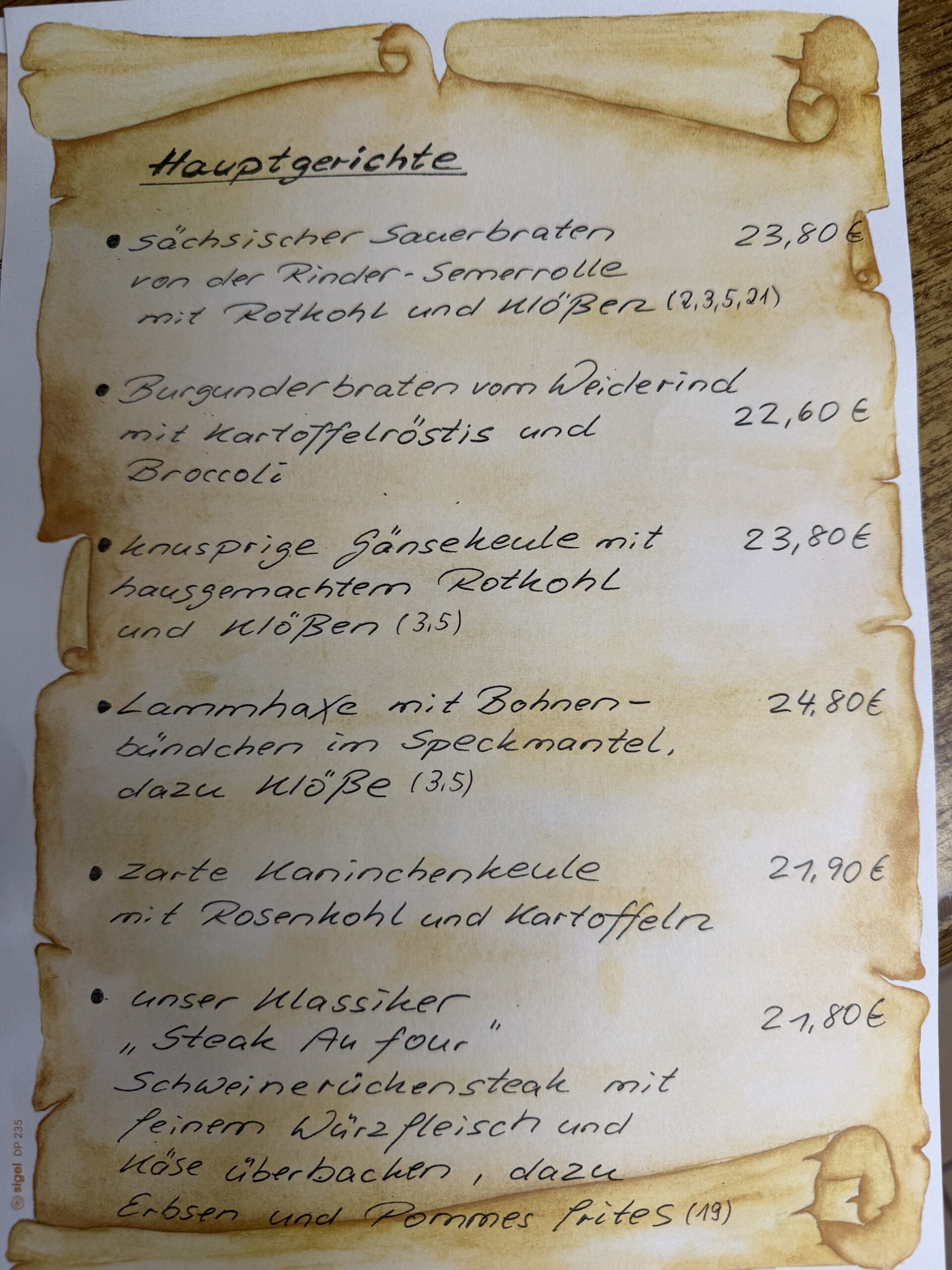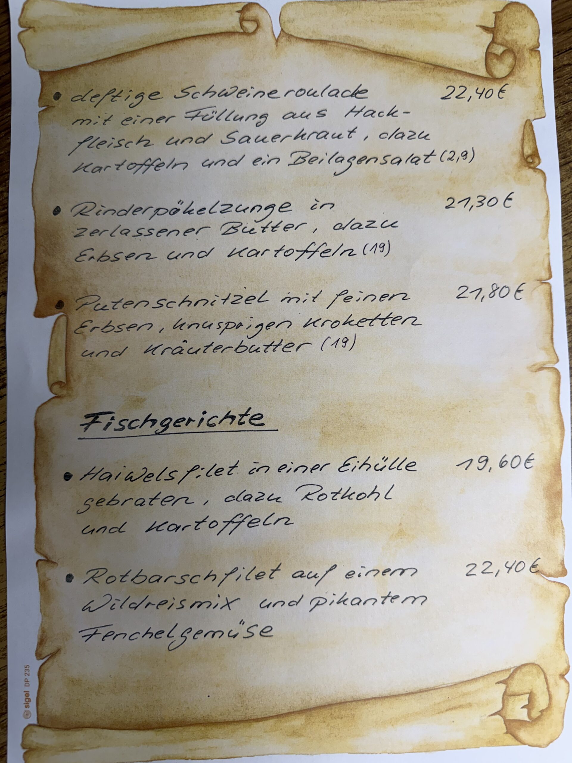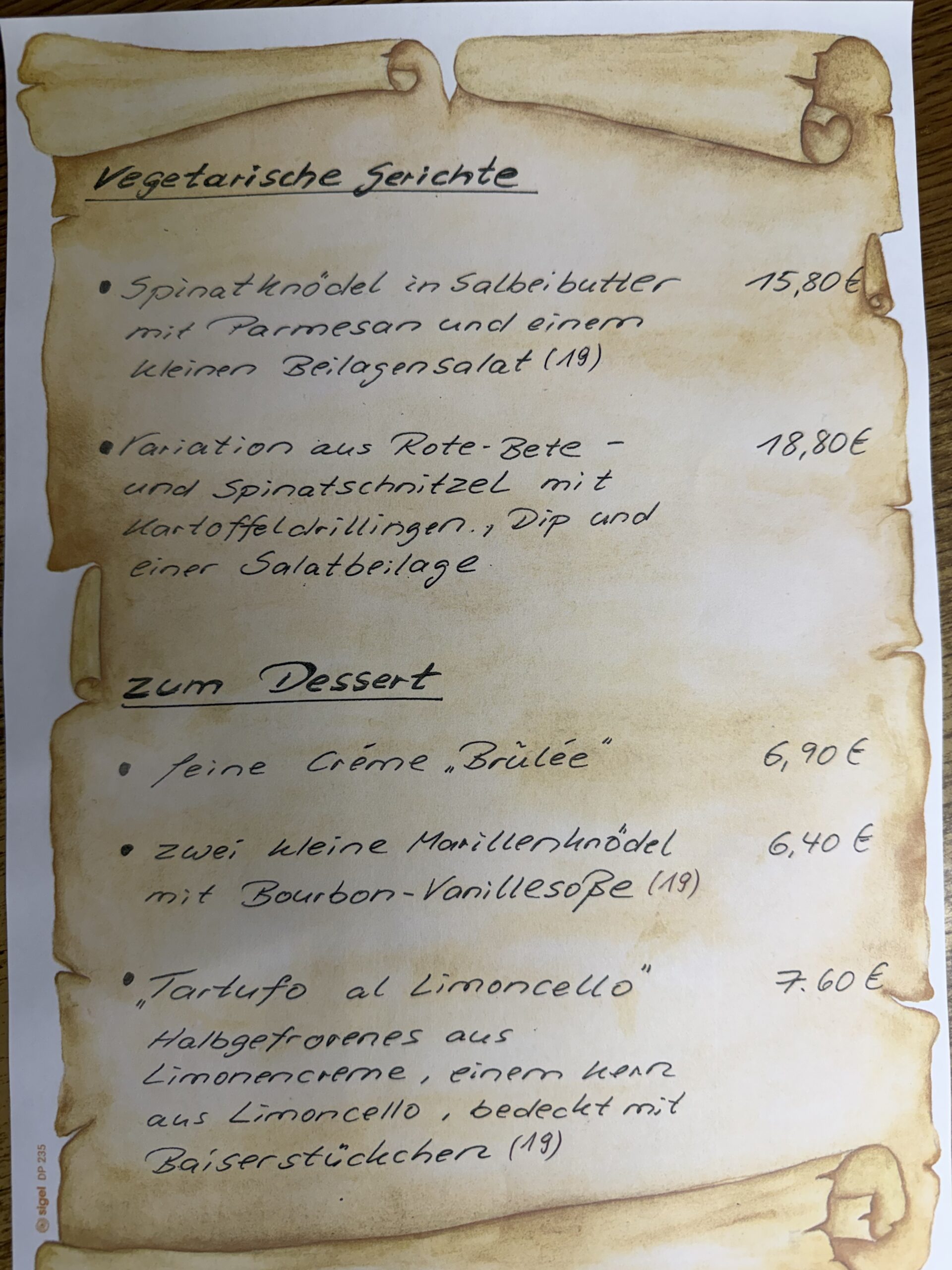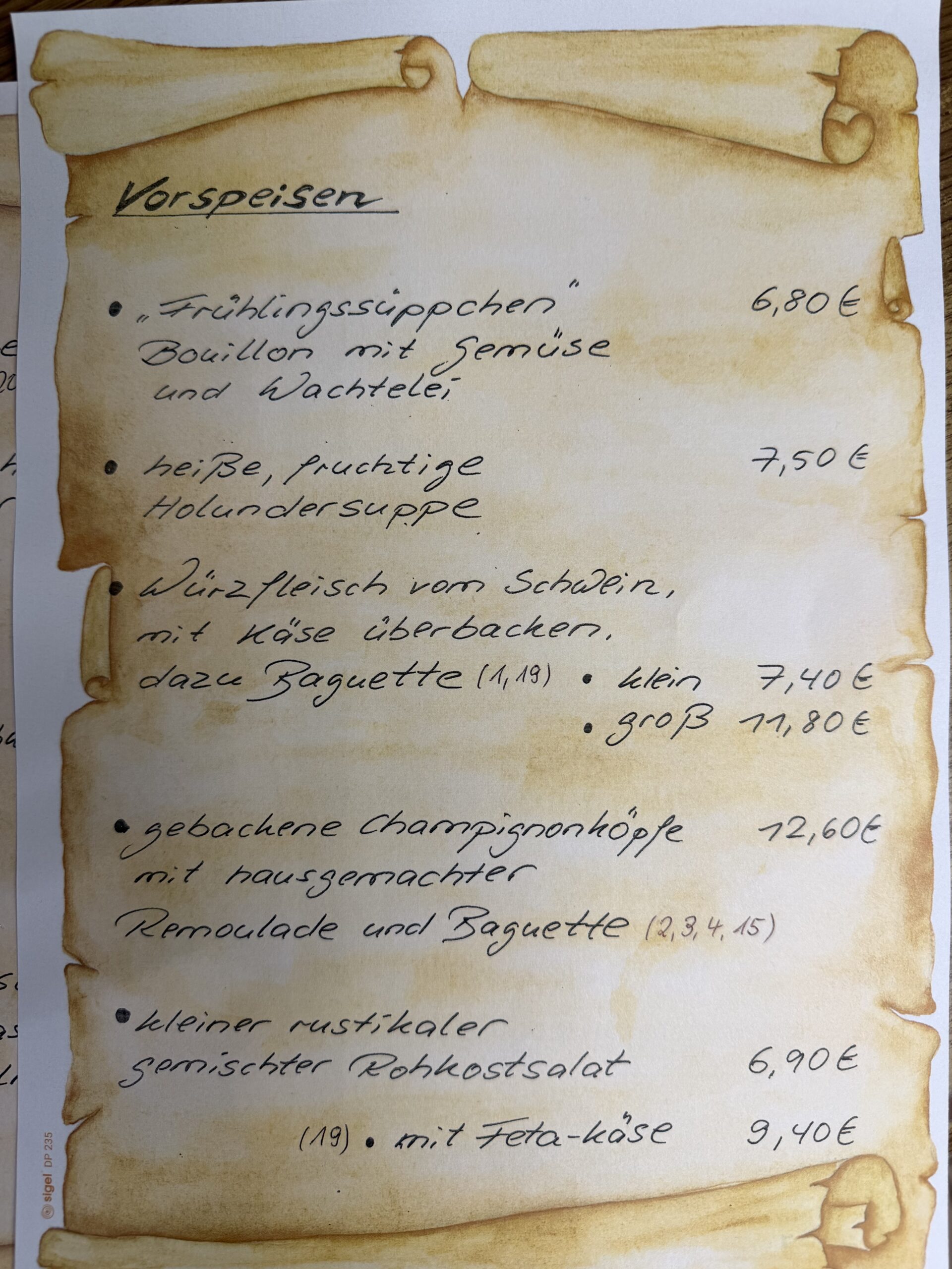 • Speisekarte